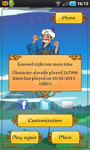 Akinator can read your mind and tell you what character you are thinking about, just by asking a few questions. Think of a real or fictional character and Akinator will try to guess who it is. Will you dare challenge the Genie?