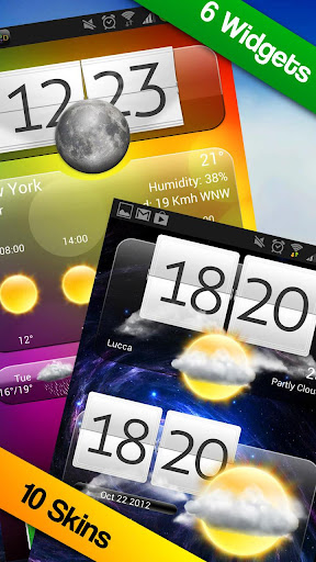 Choose between 6 different Widgets, each skinnable with 10 different themes. Widgets include Digital Clock, special effects like rain drops or clouds, and weather forecast.